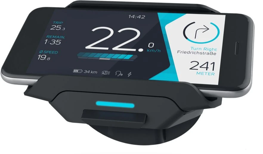 Avec le COBI.Bike Sport, vous pouvez connecter votre VTTAE au monde numérique et le contrôler confortablement avec votre smartphone. Le COBI.Bike Sport se fixe sur le support d’écran Bosch Nyon Gen.1 ou Intuvia et se connecte à l’application COBI. Ensuite, votre smartphone peut être utilisé comme écran à part entière une fois fixé dans le support Universal Mount ou glissé dans la poche de votre pantalon.